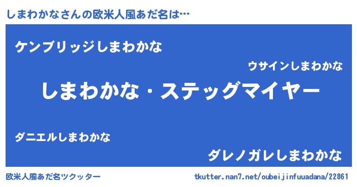 | 意味不明あだ名 | 『自称しまわかな』 |