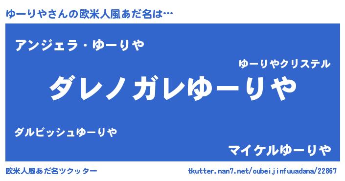 | 男性向けラノベタイトル風あだ名 | 『この素晴らしい世界にゆーりやを!』 |