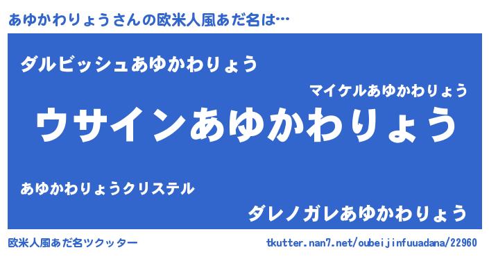 | 女子向けラノベタイトル風あだ名 | 『あゆかわりょうの卵を拾いまして』 |