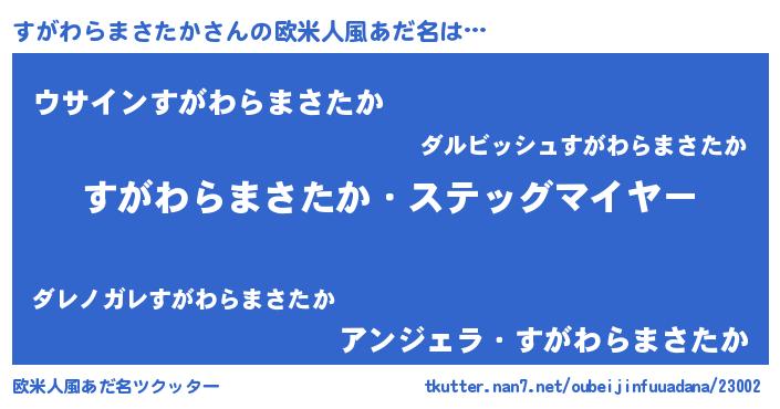 | 男性向けラノベタイトル風あだ名 | 『冴えないすがわらまさたかの育てかた』 |