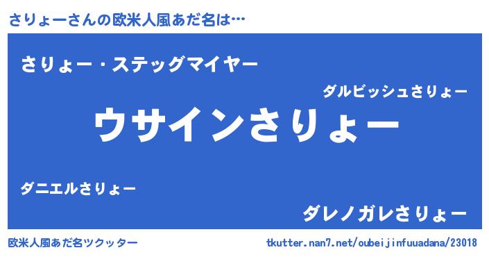 | 男性向けラノベタイトル風あだ名 | 『ダンジョンにさりょーを求めるのは間違っているだろうか』 |