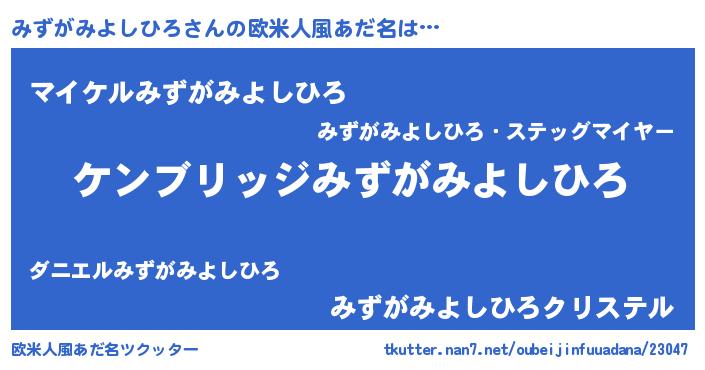| 意味不明あだ名 | 『自称みずがみよしひろ』 |