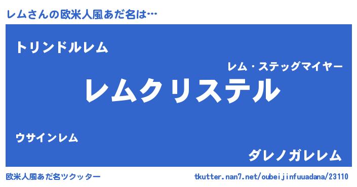 | 女子向けラノベタイトル風あだ名 | 『レムの雑貨屋さん』『レム様がみてる』 |