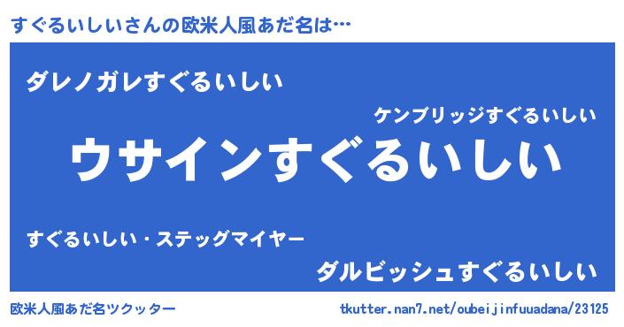 | 男性向けラノベタイトル風あだ名 | 『すぐるいしいの嫁は女の子じゃないと思った?』 |