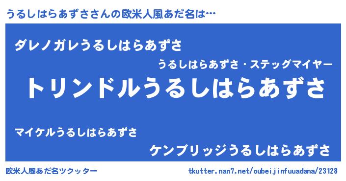 | 男性向けラノベタイトル風あだ名 | 『ウルシハラアズサスレイヤー』 |