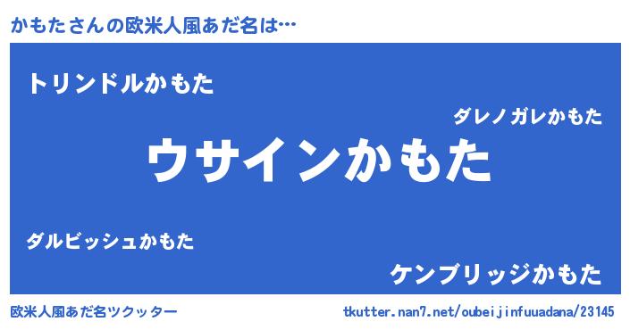 | 男性向けラノベタイトル風あだ名 | 『かもたの嫁は女の子じゃないと思った?』 |