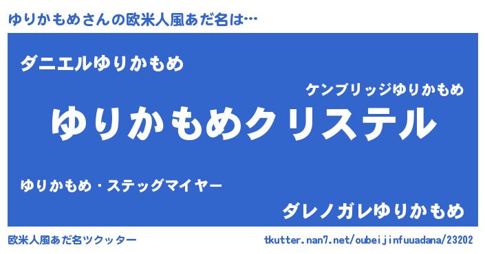 | ファンタジー風あだ名 | 『エターナルユリカモメー』『ゼユリトゥ』 |