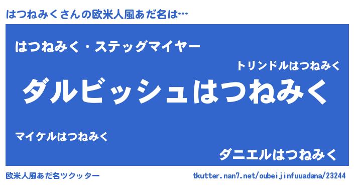 | 女子向けラノベタイトル風あだ名 | 『異世界で失敗しない100のはつねみく』 |