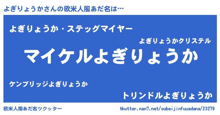 | 男性向けラノベタイトル風あだ名 | 『ヨギリョウカアートオンライン』 |