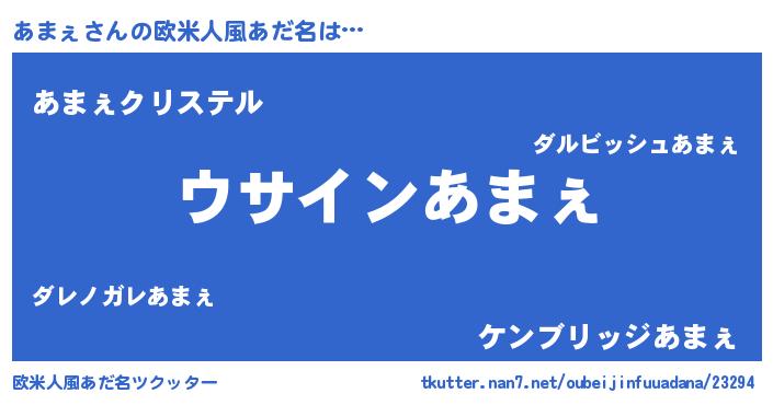 | 男性向けラノベタイトル風あだ名 | 『あまぇの嫁は女の子じゃないと思った?』 |