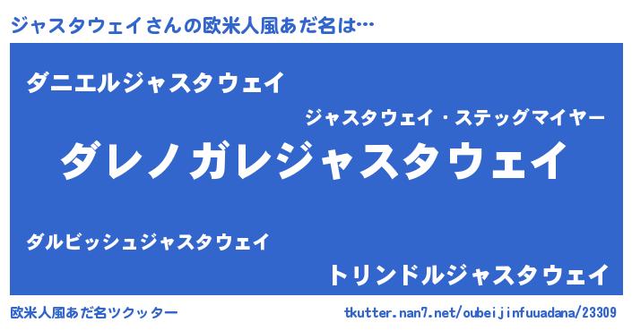 | 男性向けラノベタイトル風あだ名 | 『この素晴らしい世界にジャスタウェイを!』 |
