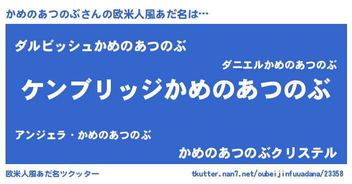 | 男性向けラノベタイトル風あだ名 | 『Re:かめのあつのぶから始める異世界生活』 |