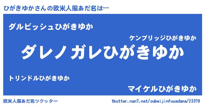 | 男性向けラノベタイトル風あだ名 | 『この素晴らしい世界にひがきゆかを!』 |