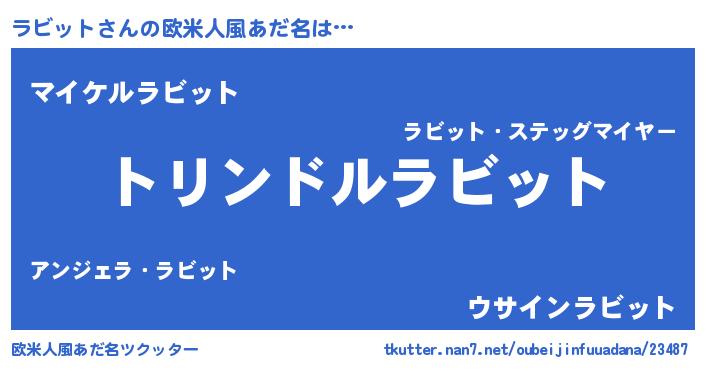 | 男性向けラノベタイトル風あだ名 | 『ラビットスレイヤー』『ラビットの憂鬱』 |