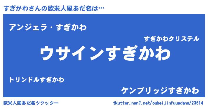 | 男性向けラノベタイトル風あだ名 | 『すぎかわの嫁は女の子じゃないと思った?』 |