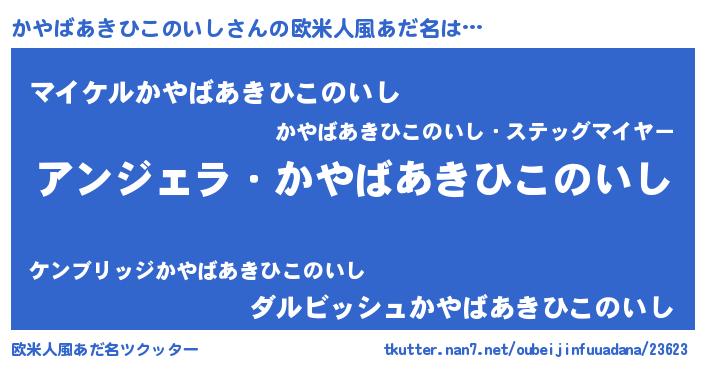 | 男性向けラノベタイトル風あだ名 | 『かやばあきひこのいしに滅ぼされるだけの簡単なお仕事です』 |