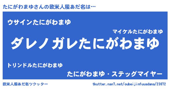 | 男性向けラノベタイトル風あだ名 | 『魔弾の王とたにがわまゆ』 |