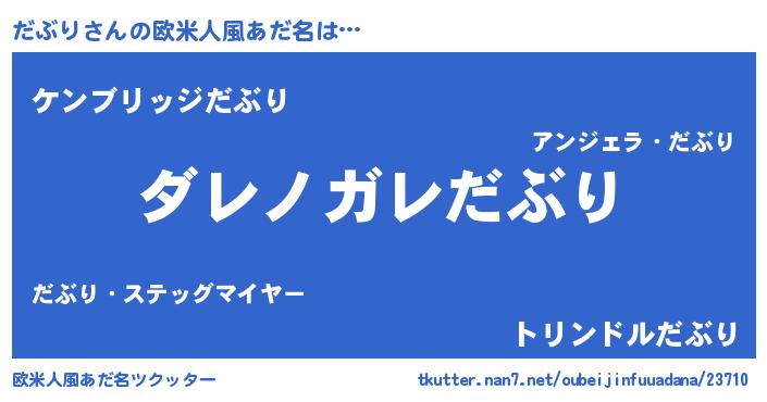 | 男性向けラノベタイトル風あだ名 | 『魔弾の王とだぶり』 |