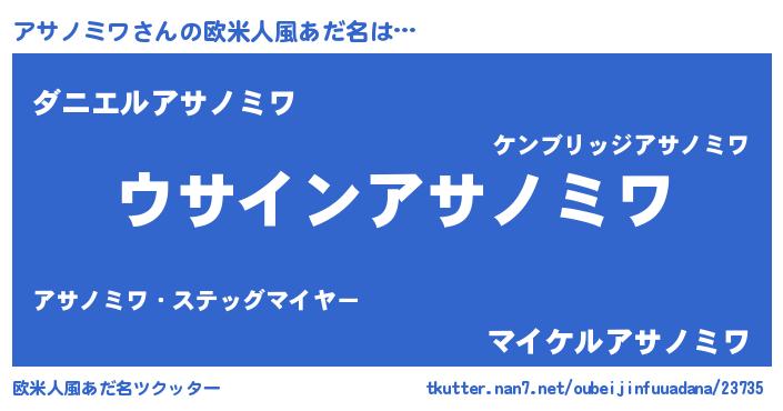 | 意味不明あだ名 | 『とにかく怪しいアサノミワ』 |
