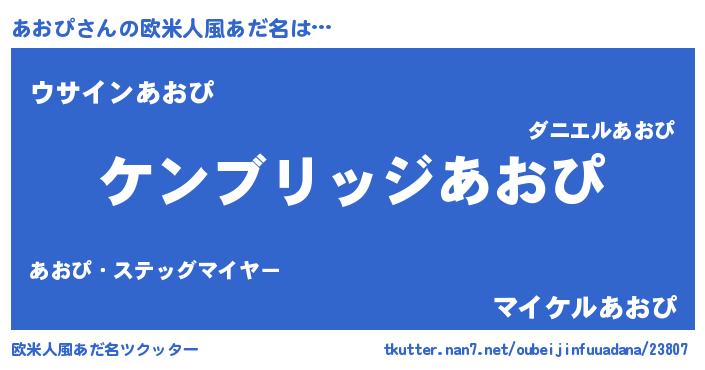 | 男性向けラノベタイトル風あだ名 | 『Re:あおぴから始める異世界生活』 |