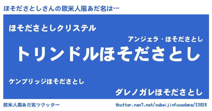| 女子向けラノベタイトル風あだ名 | 『ほそださとしの玉の輿計画!』 |