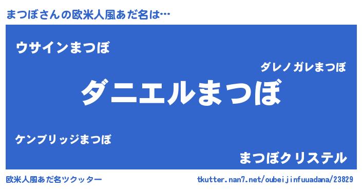 | 女子向けラノベタイトル風あだ名 | 『死神まつぼの再婚』『まつぼ伯爵の花嫁』 |