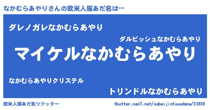 | ヘコむあだ名 | 『なかっふぃ~』『なかむらあやり(笑)』 |