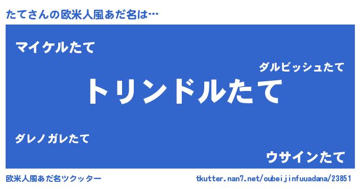 | 胡散臭い通販商品みたいなあだ名 | 『億万長者になれる霊験あらたかなお札…その名も「たて」』 |