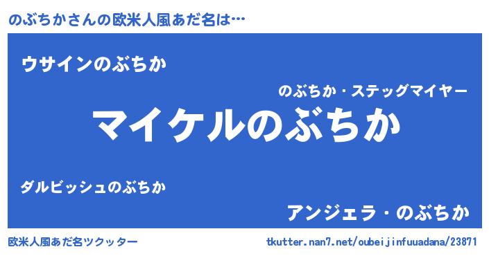 | 男性向けラノベタイトル風あだ名 | 『ノブチカアートオンライン』 |