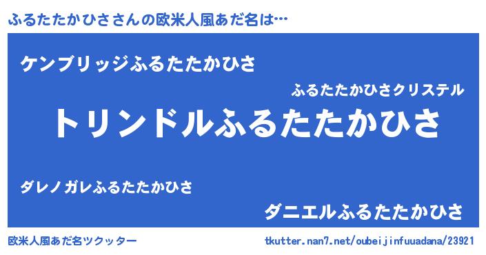 | 女子向けラノベタイトル風あだ名 | 『ふるたたかひさの玉の輿計画!』 |