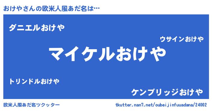| 男性向けラノベタイトル風あだ名 | 『おけやの憂鬱』『魔法科高校のおけや』 |