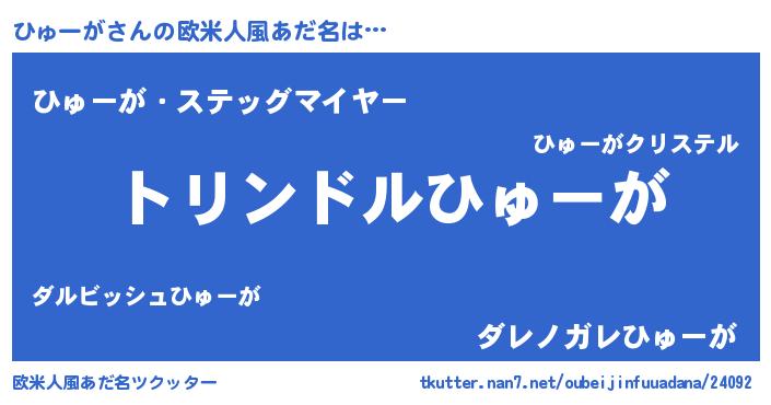 | 男性向けラノベタイトル風あだ名 | 『転生したらひゅーがだった件』 |