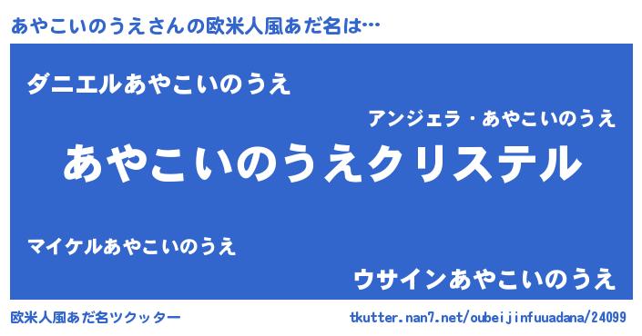| 女子向けラノベタイトル風あだ名 | 『あやこいのうえの雑貨屋さん』 |