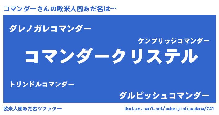 | 意味不明あだ名 | 『コマンダーフォーエバー』 |