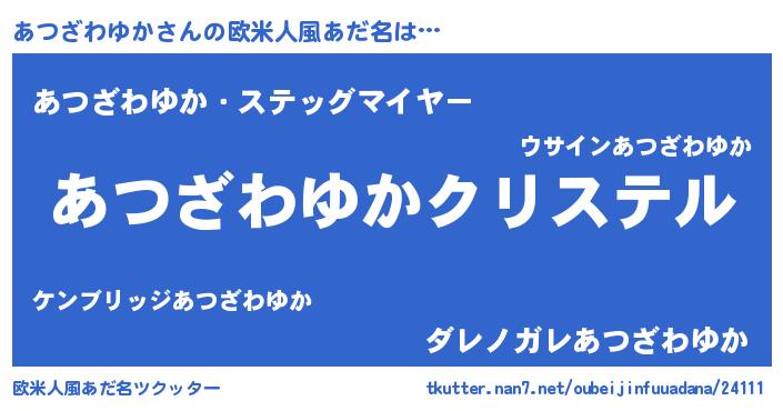 | 男性向けラノベタイトル風あだ名 | 『やはりあつざわゆかの青春ラブコメはまちがっている 』 |