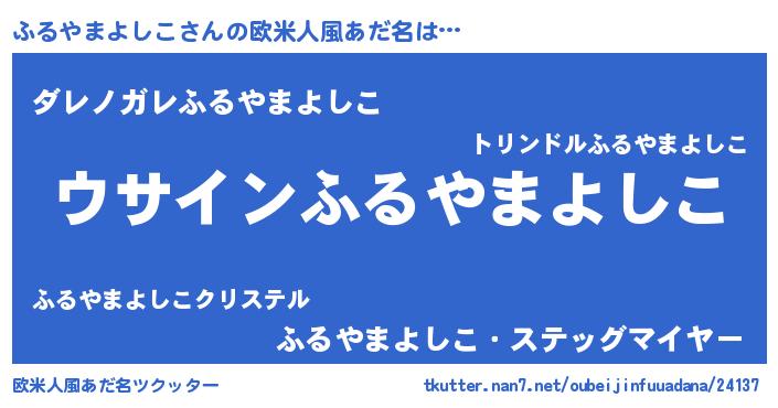 | 男性向けラノベタイトル風あだ名 | 『ふるやまよしこの嫁は女の子じゃないと思った?』 |