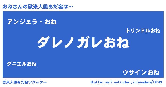 | 男性向けラノベタイトル風あだ名 | 『魔弾の王とおね』『はたらくおねさま!』 |
