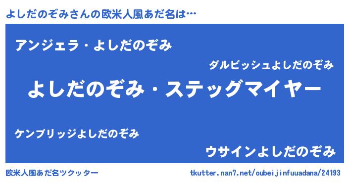 | 胡散臭い通販商品みたいなあだ名 | 『信頼と実績のサプリメント…その名も「よしだのぞみ」』 |