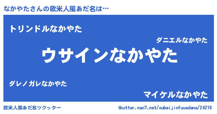 | 男性向けラノベタイトル風あだ名 | 『なかやたの嫁は女の子じゃないと思った?』 |
