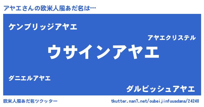 | 意味不明あだ名 | 『とにかく怪しいアヤエ』『自称アヤエ』 |
