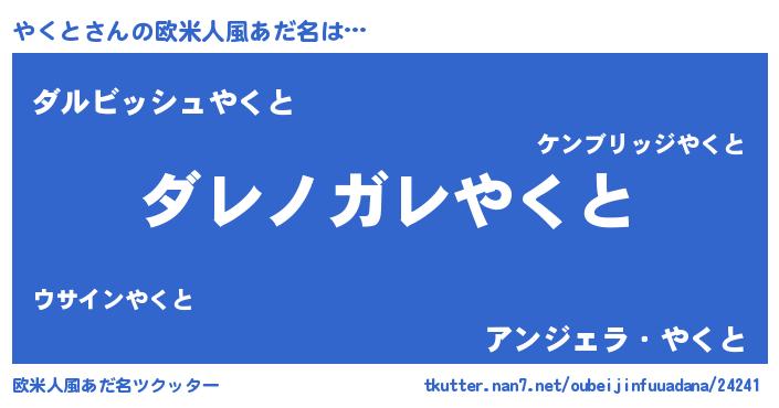 | 意味不明あだ名 | 『住所不定無職やくと(86歳)』『自称やくと』 |