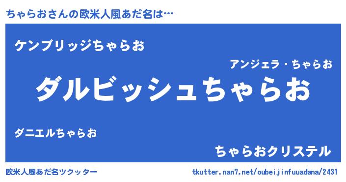 | 胡散臭い通販商品みたいなあだ名 | 『絶対に幸福をもたらす健康食品…その名も「ちゃらお」』 |