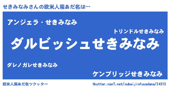 | 意味不明あだ名 | 『永久保存せきみなみ』『自称せきみなみ』 |