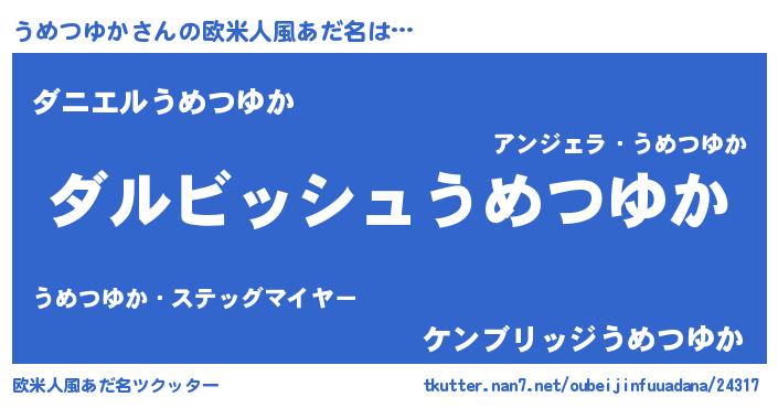| 男性向けラノベタイトル風あだ名 | 『うめつゆかという概念が存在しない退屈な世界 』 |