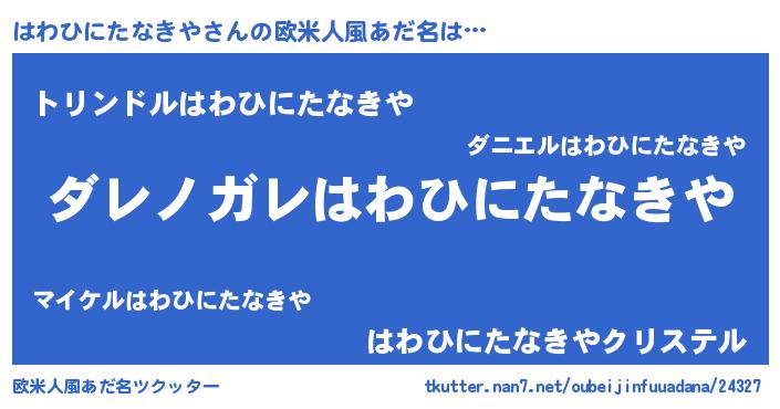 | 男性向けラノベタイトル風あだ名 | 『この素晴らしい世界にはわひにたなきやを!』 |