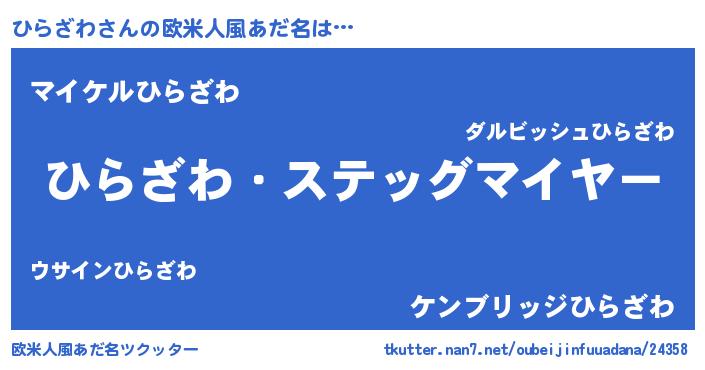 | 男性向けラノベタイトル風あだ名 | 『うちのひらざわが世界を掌握している!』 |