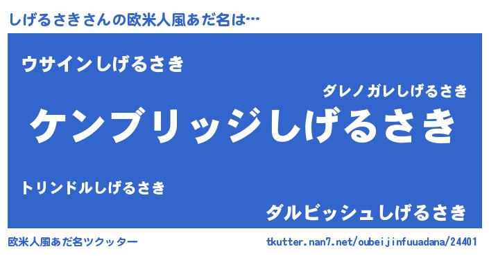 | 男性向けラノベタイトル風あだ名 | 『Re:しげるさきから始める異世界生活』 |