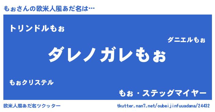 | 男性向けラノベタイトル風あだ名 | 『この素晴らしい世界にもぉを!』 |