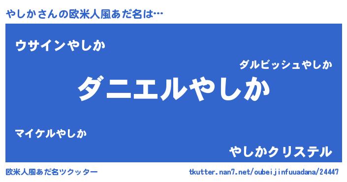 | 女子向けラノベタイトル風あだ名 | 『死神やしかの再婚』『やしか伯爵の花嫁』 |