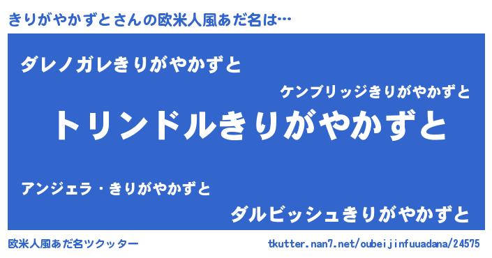 | 女子向けラノベタイトル風あだ名 | 『きりがやかずとの玉の輿計画!』 |
